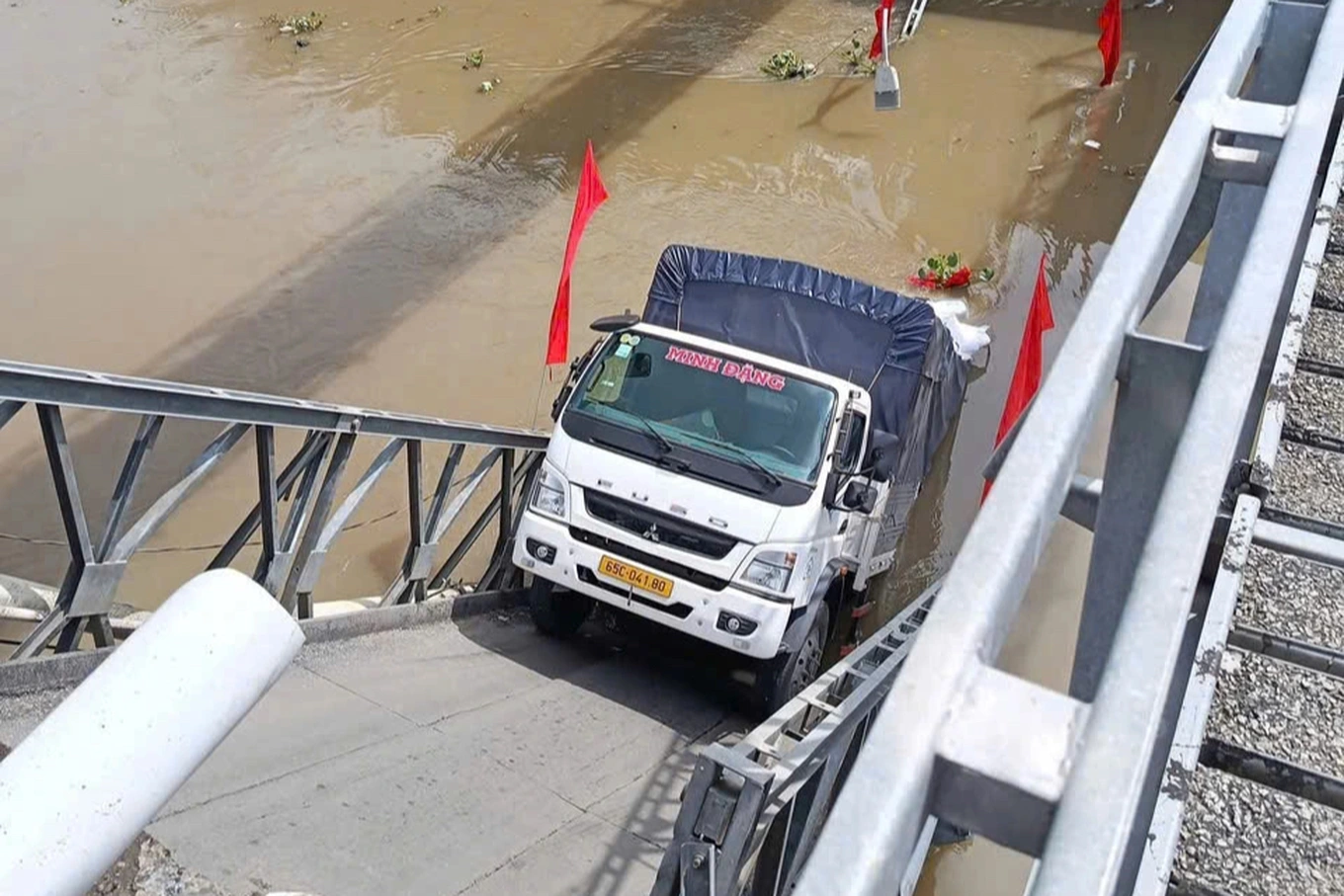(Dân trí) – Cầu 30/4 bắc qua sông Thốt Nốt, tuyến sông có lưu lượng vận chuyển lúa gạo đường sông tấp nập và quan trọng ở Cần Thơ, vừa bị sập nhịp dẫn giữa làm một xe tải bị rơi xuống sông.